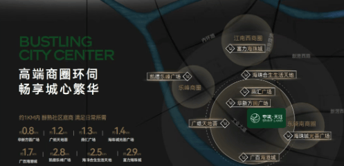 核心商圈:项目1公里范围内汇聚了乐峰广场、江南西商圈、东晓南商圈等三大成熟商圈。乐峰广场等大型综合体近在咫尺,购物、餐饮、娱乐一站式搞定。