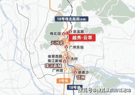 【越秀·云萃】坐落在中轴之上,距离珠江新城仅5公里,拥有得天独厚的地理位置优势。项目周边交通便利,家门口即是18号线京溪路站,步行约800-900米即可到达3号线梅花园站。通过这些地铁线路,居民可以快速抵达珠江新城、琶洲、天河北等核心区域。自驾出行方面,项目紧邻广州大道和沙太路,方便快捷地连接到城市的各个角落。