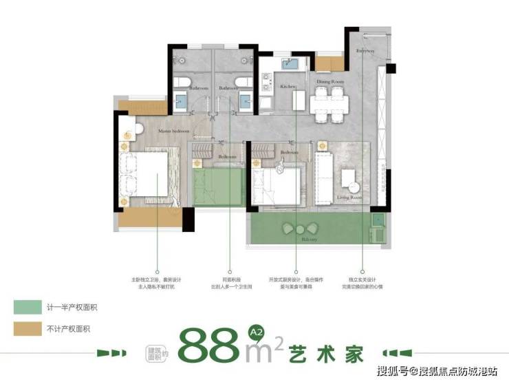 - **88㎡三房两厅两卫**:主卧套房设计(带独立卫浴),5.4米阔景阳台连通客厅,北向次卧可改造为书房,满足年轻家庭“一步到位”需求;