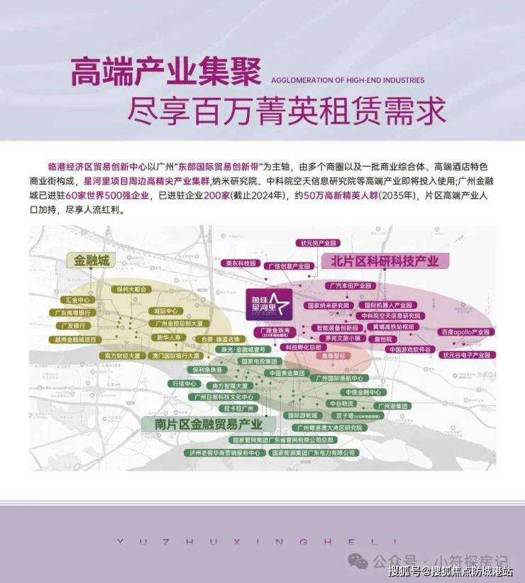 作为广州未来发展重点,项目周边高端产业聚集;如国际金融城的国际金融产业、临港经济圈南部的贸易产业及北部的科研科技产业等;千亿产业汇聚百万高端菁英人才,提升片区素质促进经济商业发展。