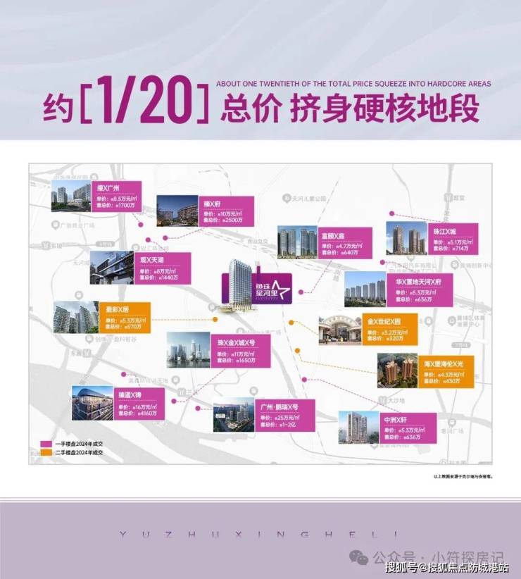 项目一路之隔即天河,黄埔鱼珠板块核心地段,周边五公里范围内,房价单价5-20万之间,距离项目一路之隔天河润府均价与富颐华庭均价约5万元,套均总价约500~700万之间,星河里项目约二十分之一总价,即可挤身核心地段。