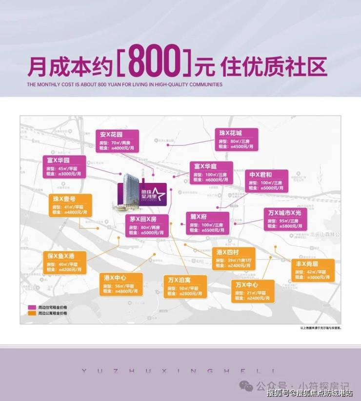 项目周边住宅租金约4500~6000元每月,公寓租金约2800~4000元每月,星河里项目每月成本仅约800元,即可住优质社区。