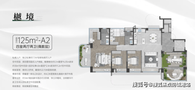 其中,110平方米的户型特别值得一提,它通过大阳台设计和空中花园配置,实现了高达140%的实用率,真正做到了用110平方米的花费享受170平方米的空间体验。