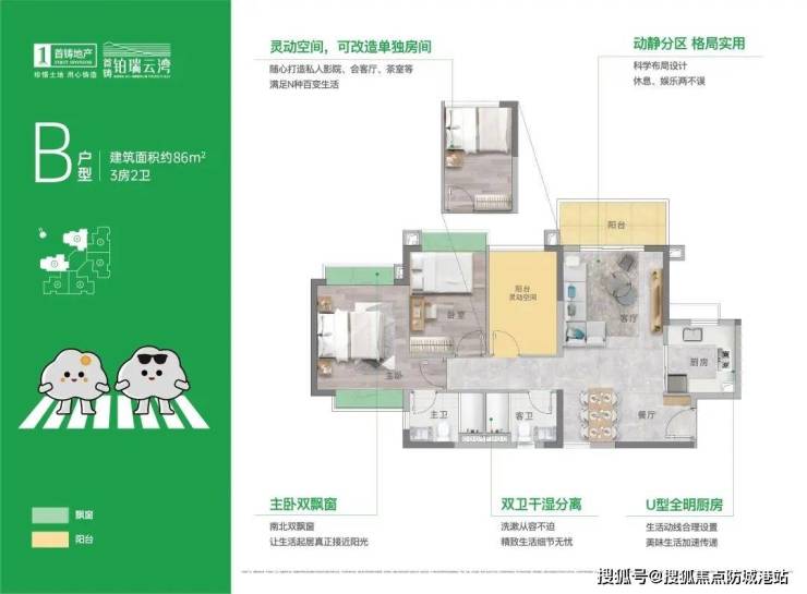 此外,项目还提供了小户型选择,如86㎡三房两厅两卫和105㎡四房两厅两卫,这些户型设计注重空间的实用性与舒适性,非常适合小家庭或首次置业的客户。