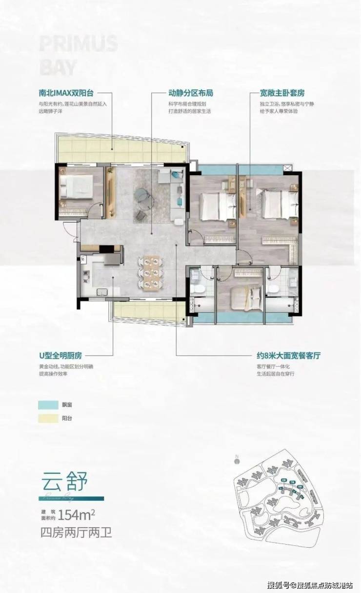 132㎡四房两厅两卫:一体式双厅布局,双阳台设计,约12.6米超长采光面,房间设有阔景飘窗,采光极佳。无论是家庭聚会还是私人空间的享受,都十分适合。