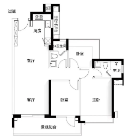 建面约96㎡三房:三开间朝南,6米阔景阳台,LDK一体化设计,动静分区合理。