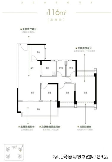 高使用率户型:全南向设计,小户型也能享受良好采光和通风,最大使用率可达118%。