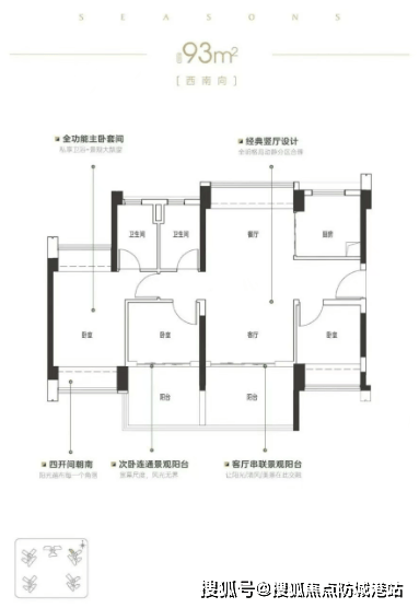 新世界四季山水目前主推92-141平方米的三至五房户型,全部采用南向设计,主打高使用率,最高可达118%。其中,小户型楼栋采用2梯5户设计,大户型楼栋则为2梯3户设计,保证了居住密度均衡,减少了等电梯的时间。这些户型不仅实用性强,而且采光和通风效果极佳,适合不同家庭结构的需求。