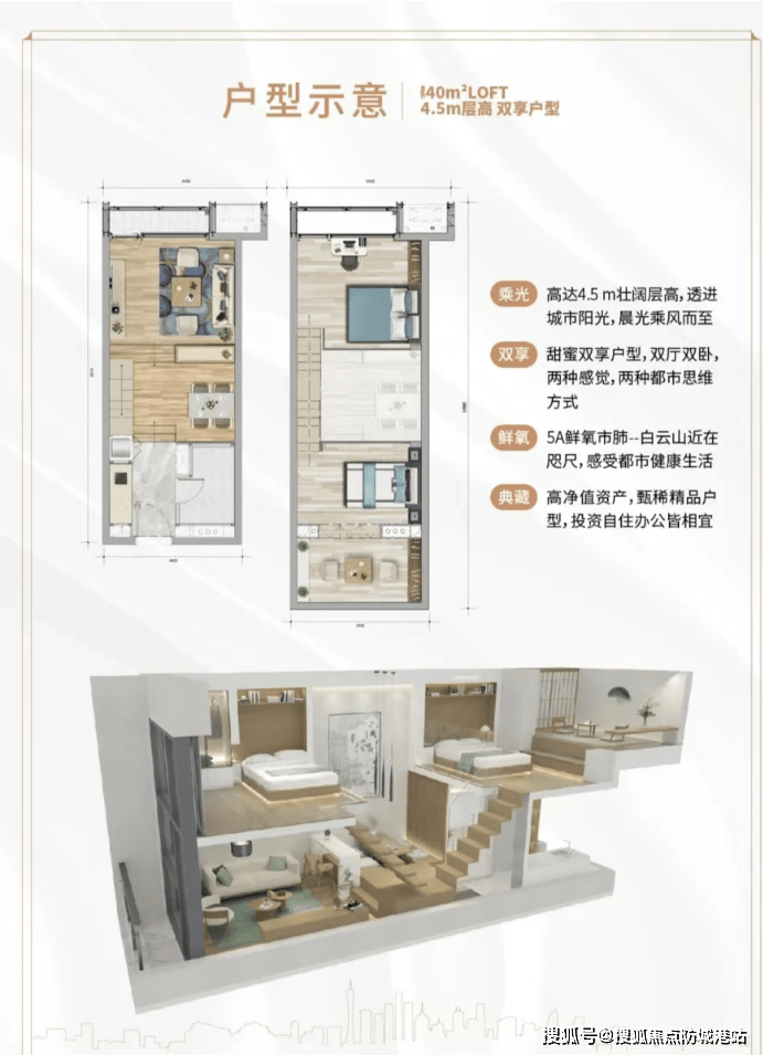 观成大楼|建面约31-57㎡|层高4.5米:中空挑高设计,可改造为两层空间,打造“大House”体验