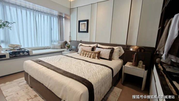 第三个亮点,是双套房设计,主卧和次卧都带独立卫生间和衣帽间,私密性、舒适度拉满。主卧套房,面积超大,不仅有独立卫生间、衣帽间,还有超大飘窗,采光、通风效果超好,而且飘窗正对珠江,坐在飘窗上,就能欣赏到江景,私人空间充足,适合主人居住;次卧套房,面积也很宽敞,带独立卫生间和衣帽间,适合老人或者孩子居住,老人起夜方便,孩子也能拥有自己的私人空间,互不打扰,相处起来更和谐。