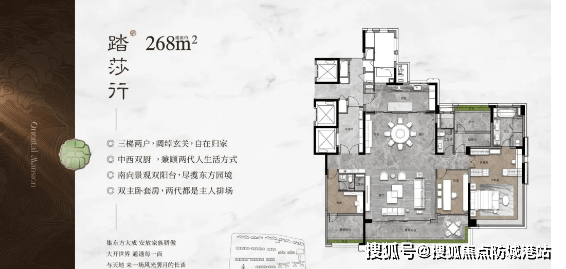 项目主推 107-268㎡三至五房,板楼以 2 梯 2 户 / 3 梯 2 户为主(专梯入户),塔楼 2 梯 4 户,空间设计聚焦 “舒适度 + 实用性”。107-125㎡三房为刚需改善款,部分户型可拓展额外房间,主卧带独立卫浴与观景飘窗,适配三口之家;143㎡四房为明星户型,板楼专梯入户,南北对流,LDK 一体化设计,客厅连接宽景阳台,满足多代同堂需求;268㎡五房为顶改旗舰款,3 梯 2 户(含保姆梯),双主套设计,LDKG 大方厅近 120㎡,主卧 270° 全景飘窗(尺度超 9 米)+ 双衣帽间 + 双台盆,部分户型望汇景高尔夫球场,适合家族式居住,全户型均以 “大面宽、强收纳、高通透” 为核心,贴合改善家庭对空间的高阶需求。