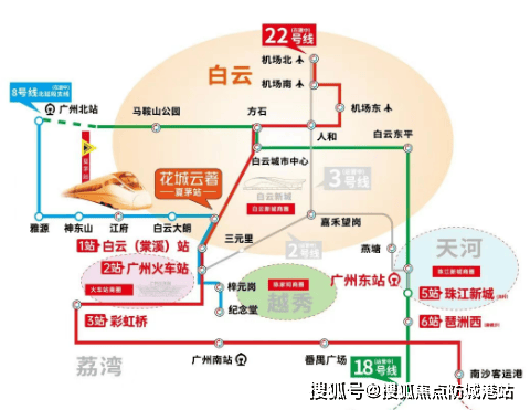 在交通上,花城云著紧邻地铁22号线和8号线北延段支线的夏茅站,距离站点仅约50米,实现了真正的“家门口的地铁出行”。通过这些地铁线路,居民可以快速到达白云站、越秀、老荔湾等地,甚至换乘至珠江新城。此外,项目周围还有多条主干道和高速公路,方便驾车出行。