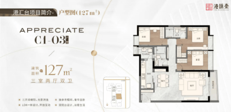 127平方米三房两厅两卫:三开间朝阳,LDK一体设计,开放互动,大开间设计,诗意生活。