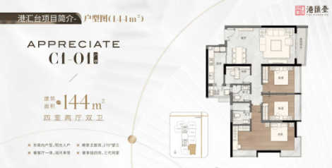汉国置业港汇台提供了多种户型选择,从69平方米的双阳台两房到144平方米的四房不等,满足不同家庭的需求: