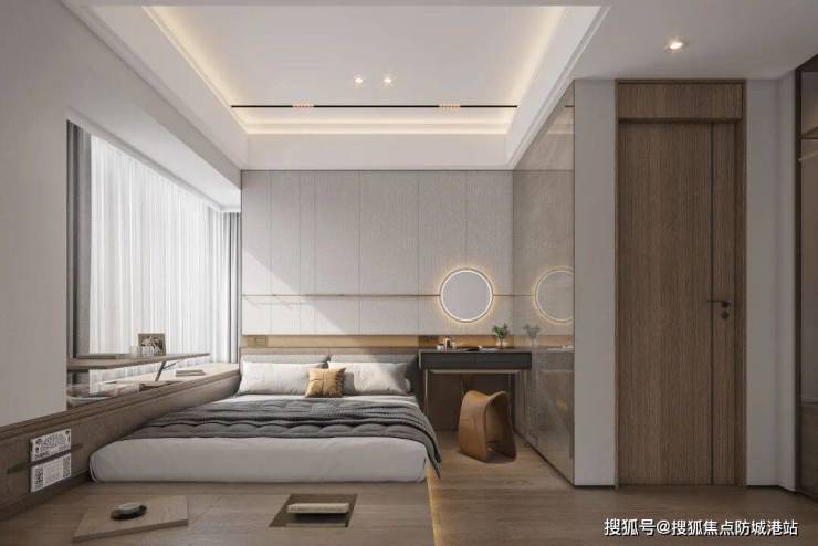 套房主卧 | 主人的尊崇私享领地大开间,主套(含飘窗)南北通透,独立衣柜赋予生活更多仪式感,拓展L型飘台,南向最大约270°观景,让生活风光无限。