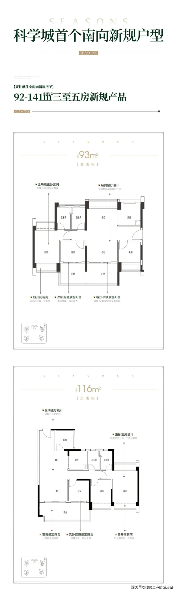 项目主推92-141㎡的三至五房户型,全南向设计,主打高使用率,最高可达118%。无论是刚需购房者还是改善型家庭,都能找到适合自己的户型。