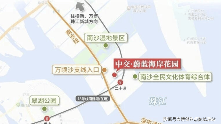 项目距离已通车的深中通道南沙线收费站约1公里。这一“超级工程”让自驾出行极具效率,半小时车程即可抵达深圳前海。对于在广、深、珠、中四地穿梭的商务人士或跨城家庭,这里是物理距离最短、时间成本最低的枢纽节点。