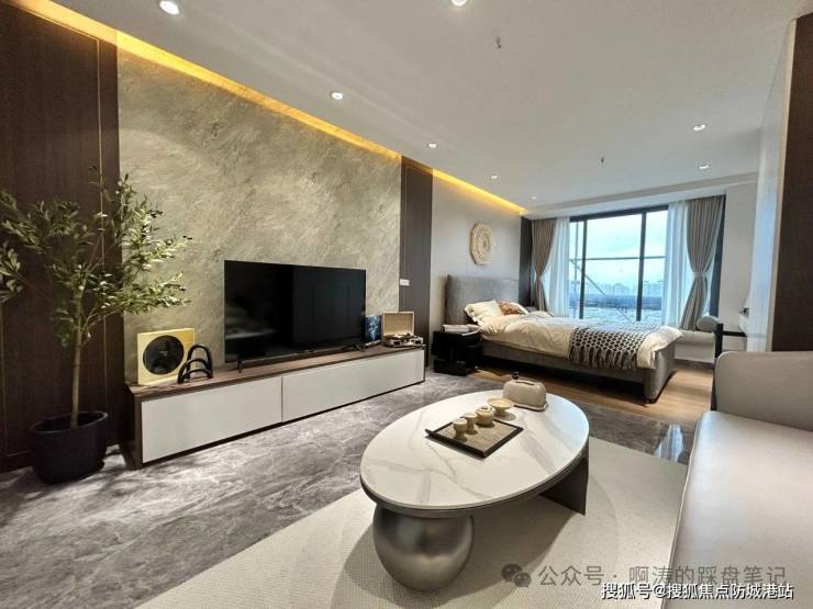 建面约43㎡灵动一房样板间,**老城芯稀缺小户型**,全明通透设计,采光通风无可挑剔,3.6米舒适开间,空间灵动多变,可根据需求改造为卧室+书房,完美适配单身贵族或情侣自住,低门槛入主越秀城芯,尊享老城成熟配套与高租金回报。