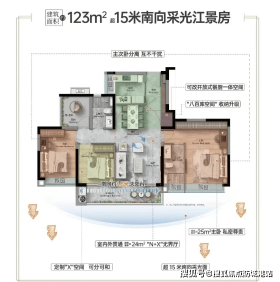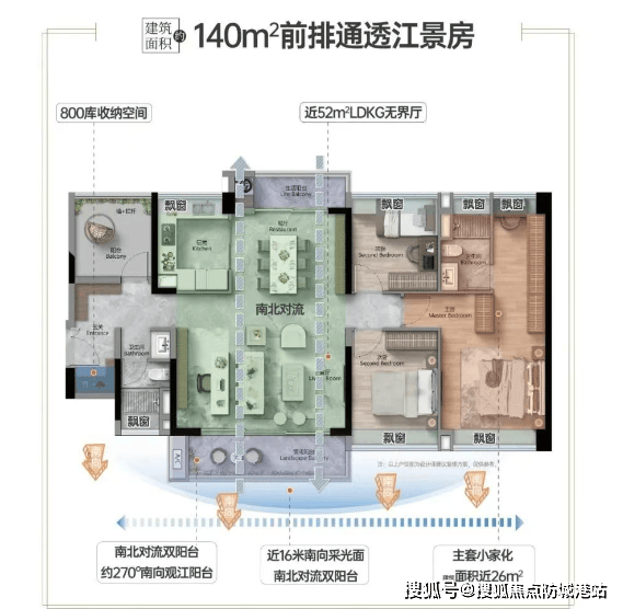 越秀·江海潮鸣主要推出建面约96-140㎡的南向观江户型,每个户型都精心设计以最大化利用景观资源: