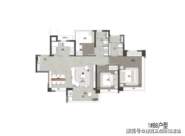 户型外面一圈全被花池和飘窗包围,赠送较高