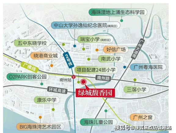 交通方面,绿城馥香园紧邻地铁2号线和广佛线交汇的南洲站,直线距离仅80米,实现了真正的“地铁口物业”。同时,地下连廊的设计让居民可以轻松直达地铁站,避免了恶劣天气对通勤的影响。周边主干道环绕,自驾出行同样便捷,无论是前往珠江新城还是琶洲等新兴商业区都非常方便。