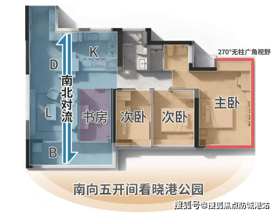 景观价值:主卧配备270°无柱广角视野,能够俯瞰晓港公园以及部分城市景观,提升了居住体验。
