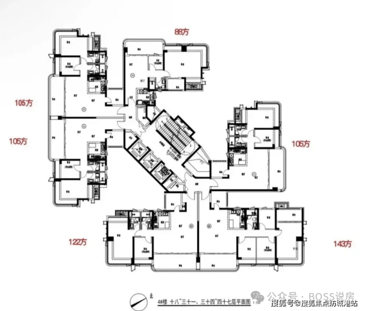 首开的4栋,采用了市面比较流行的蝶形布局,虽然南北楼间距只有30米,但是东西楼间距最大甚至超过了200米。