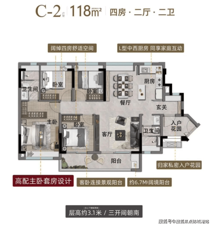 奢华舒适的户型设计:主力户型面积从97㎡至168㎡不等,均为南向设计,配备大阳台,采光通风良好,特别适合改善型家庭居住。