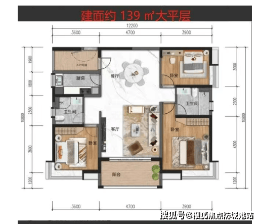 项目主力户型采用“薄板式”设计,南北通透,层高3米,搭配2梯4户低密布局,实测使用率高达90%。以139㎡四房两厅两卫为例: