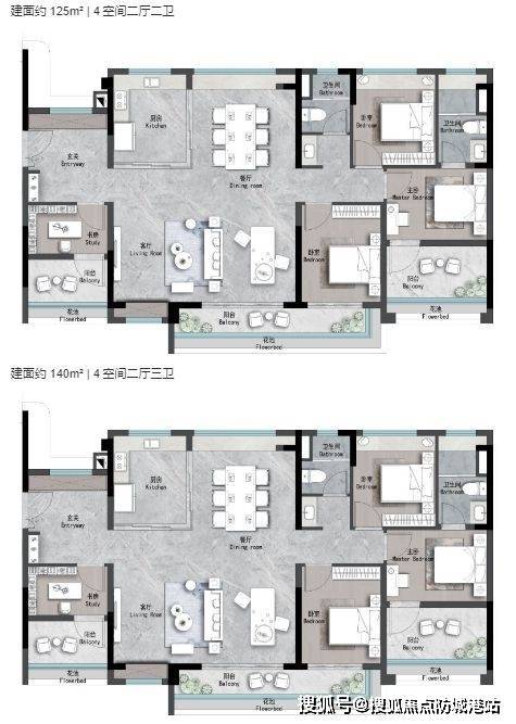 户型:93-182㎡三至五房,LDK一体化设计,得房率80-90%