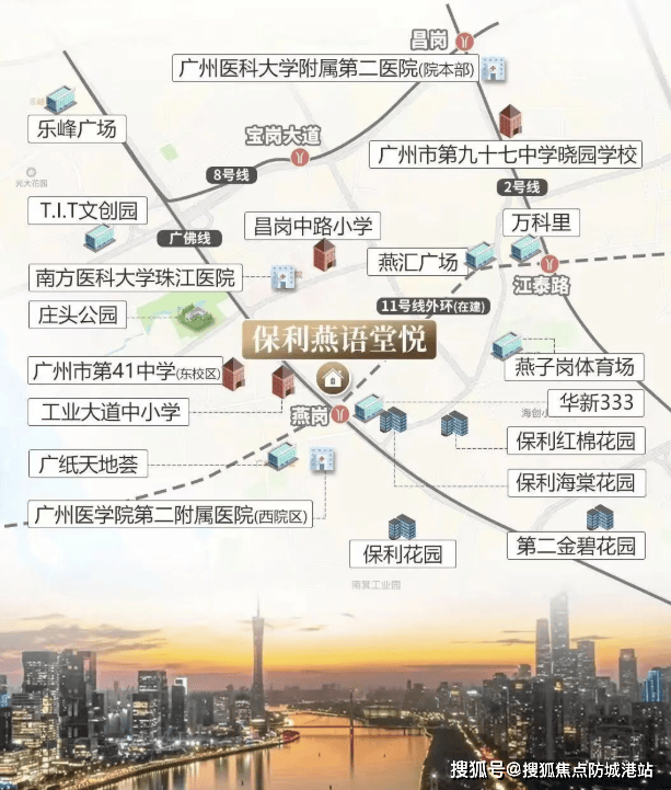 保利燕语堂悦位于广州市海珠区工业大道中313号,地处海珠文商旅融合活力圈与后航道服务型制造创新带交汇的核心地带。根据广州市规划和自然资源局《2024年广州经营性用地供地蓝皮书》及海珠区政府《后航道服务型制造创新带产业发展策划》,该区域将打造为“一心两翼四组团”的现代化产业集群,未来5年计划投入超300亿元用于基础设施升级,片区价值持续攀升。