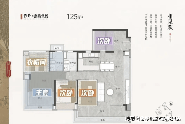 125㎡四房两卫:西南向景观房,视野无遮挡,实测采光时长超6小时/日,主卧面宽3.8米,可容纳1.8米大床+衣柜组合。
