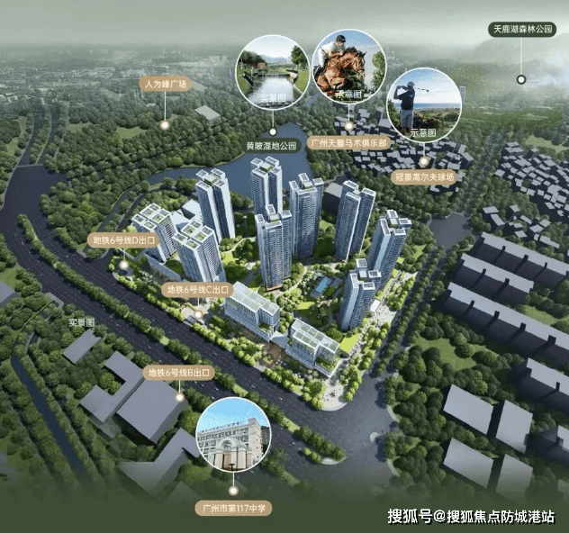 新世界·四季山水坐拥稀缺生态资源。项目5公里范围内汇聚火炉山森林公园(约600公顷)、帽峰山/天鹿湖森林公园(约880公顷)、梅花岭公园、尖峰岭公园及广州科学城体育公园,形成“城市绿肺”集群。其中,黄陂湿地公园紧邻项目东侧,提供露营、慢跑、观鸟等户外活动空间。