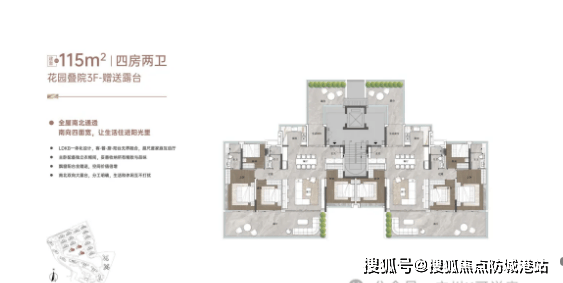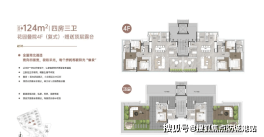 三层约115㎡户型配备南北双露台,总赠送面积超50㎡,南向露台30㎡,带来11.7米超大采光面,可一面望江、一面赏园,打造空中花园、观景茶室等专属空间。四层约124㎡复式户型,下层配备侧花园,顶层天台全赠送,使用率242%,墅级空间格局,满足大家庭的居住需求与隐私保障。