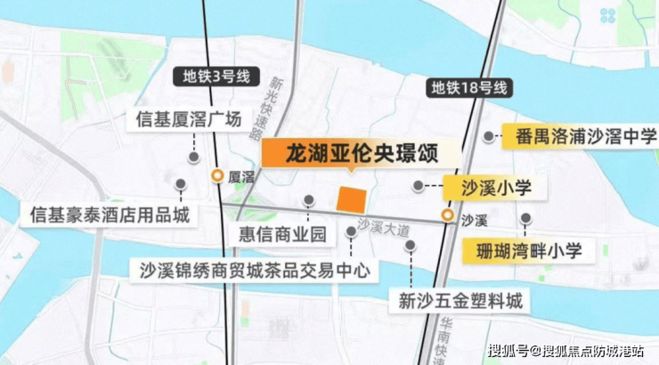 沙溪地铁站:距离项目仅600-700米,通过18号线一站可达万博,两站到琶洲,三站抵达珠江新城。