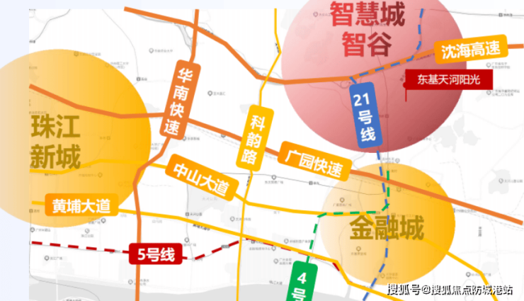 【东基天河阳光】处于第三科创中轴的核心位置,紧邻天河智谷。项目交通便利,临近地铁21号线大观南站(直线距离约800米)和4号线黄村站(直线距离约1500米)。此外,还有规划中的19号线将进一步提升项目的交通便利性。自驾出行也非常方便,通过广佛高速、广园快速等主要道路可快速连接深圳、东莞等地。