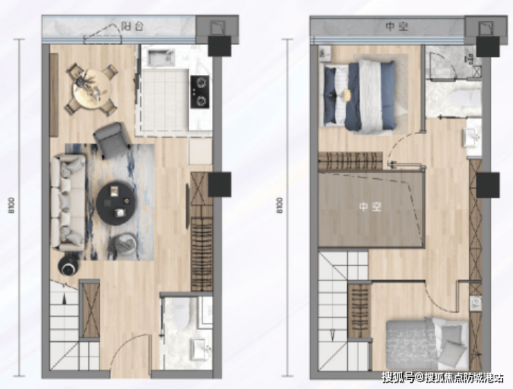 43平方米SOHO:适合小家庭或需要更多工作空间的人士,设计宽敞明亮,布局合理。