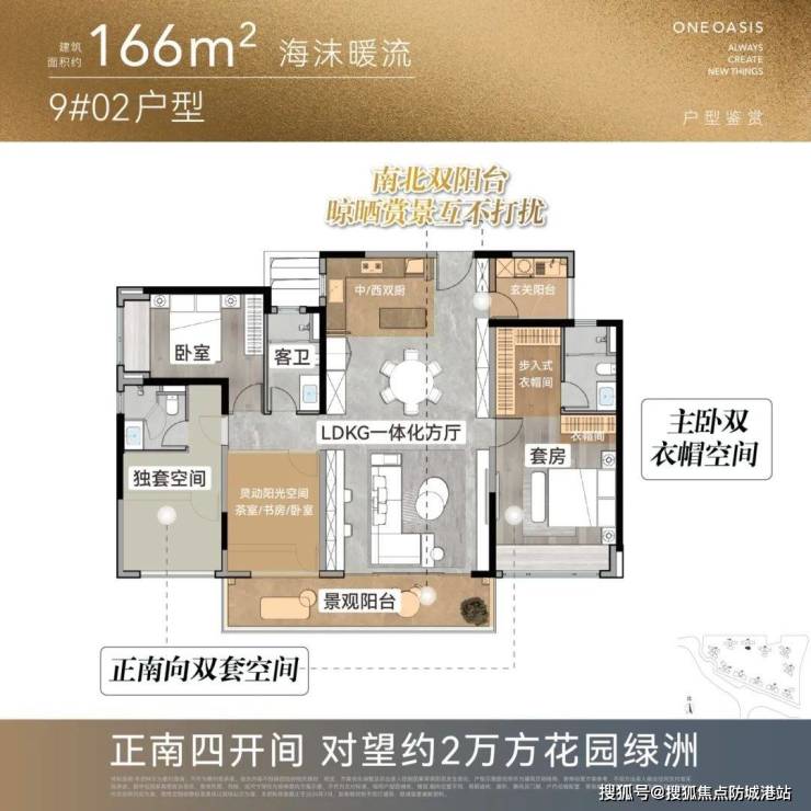 LDKB一体化客餐厅:面积约45㎡,主卧270°转角飘窗,独立衣帽间+双台盆卫浴;