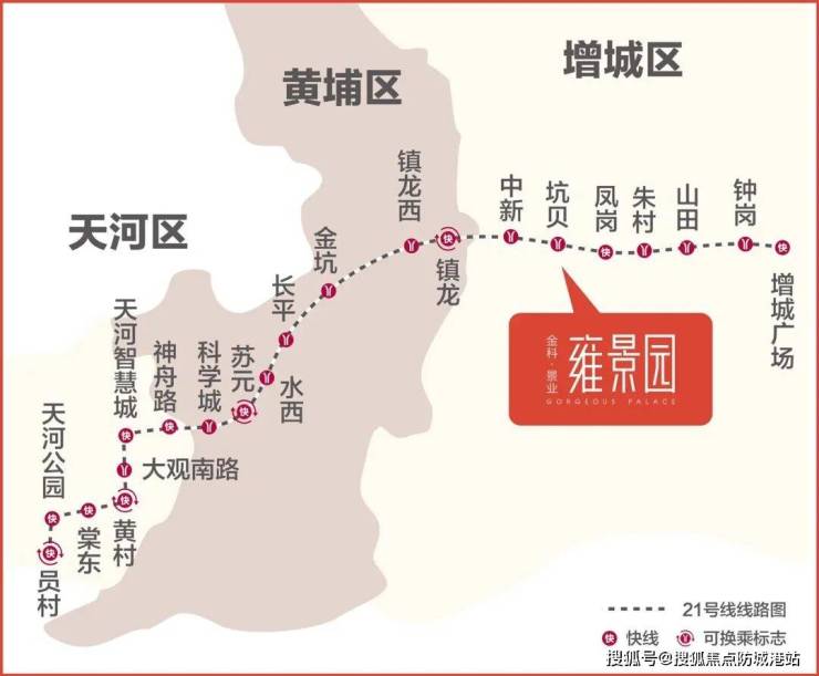 金科景业雍景园位于增城区中新镇,项目占地面积约3.2万平方米,建筑面积约10万平方米,广州地铁21号线坑贝站上盖,站点距离项目仅约100米,地理位置和地块开发条件都非常优越。