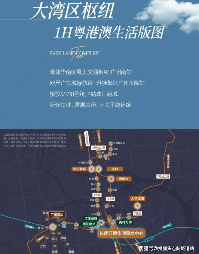 长隆万博悦府地理位置得天独厚,紧邻地铁3号线、7号线和湾区高速地铁18号线交汇的汉溪长隆站,步行仅需几分钟即可到达。此外,距离地铁18号线南村万博站约1.2公里,交通便利性不言而喻。周边还有全国线路最密集、亚洲最繁忙的高铁站——广州南站,直线距离不过6公里,进一步提升了出行的便捷度和通达度。