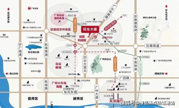 快速路网:广从一路南行25分钟直达白云新城CBD;华南快速干线30分钟畅达珠江新城核心商务区。
