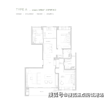 145㎡:三房两厅两卫,餐厨一体化设计,7米宽厅可切换各种生活场景。
