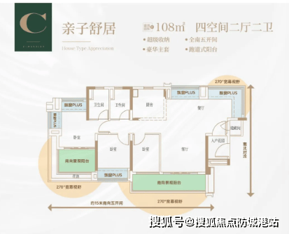 108㎡四房:南北对流 LDK 布局,15 米南向五开间,270° 双面宽阳台,超 20㎡主卧带衣帽间,对标传统 130㎡户型,适合多代同堂。