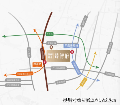 交通优势显著:距在建地铁 8 号线北延段雅源站约 550 米(2 站到白云),距在建 18 号线北延段凤凰南路站约 1 公里(5 站到广州东,链接湾区 5 城),是广花路上距 18 号线最近的楼盘。