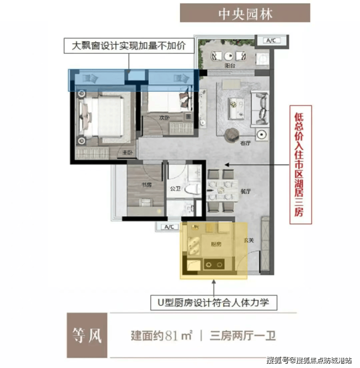 其中,81㎡三房二厅一卫户型主打低总价优势,让购房者能轻松上车湖居科技社区,户型设计紧凑实用,大飘窗设计增加了居住舒适度,同时可眺望社区园林花园。92㎡三房二厅二卫户型采用三进式设计,有效提高全屋实用率,配备270°环幕景观阳台,单边位南北对流,采光通风效果极佳。96㎡三房二厅二卫户型三开间朝南,明亮通风,部分阳光房赠送,进一步提升了空间利用率。