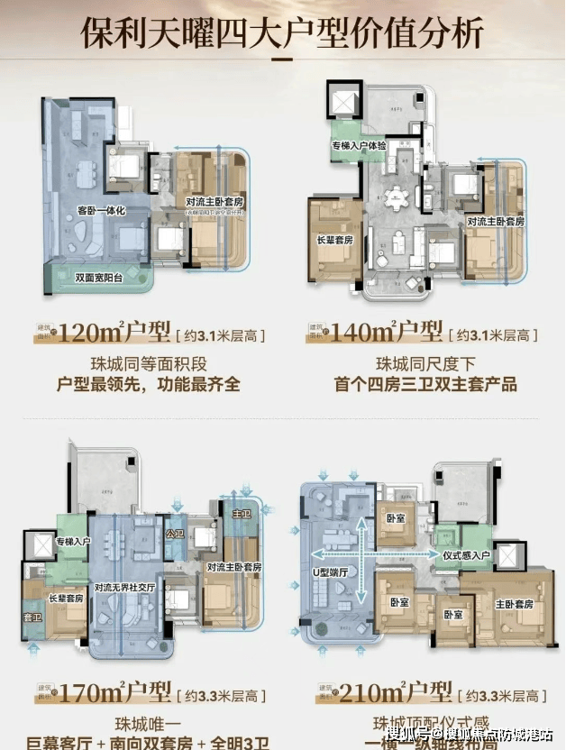 保利天曜分为南北两大地块开发,南地块为板楼设计,北地块为塔楼设计。主力户型包括120-210平方米四房单位,各栋楼之间保持了50至70米的楼间距,确保通风采光效果最佳。此外,项目还特别强调“六恒系统”,通过科技手段智能调节室内环境,提升居住舒适度。
