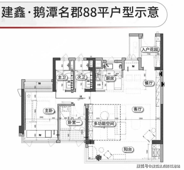 88㎡户型:两至三房设计,注重采光和空间利用率,阳台开间约6.2米,适合小家庭居住。