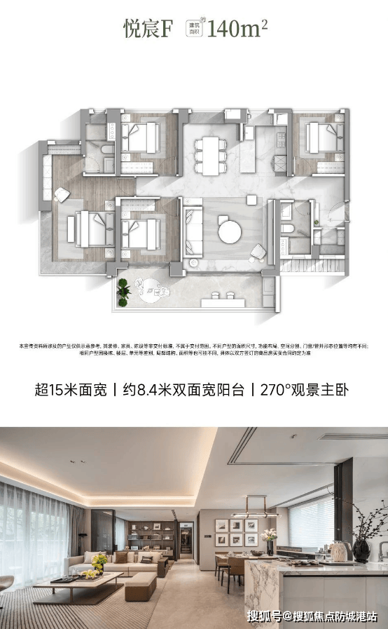 悦宸F户型 建筑面积约140㎡