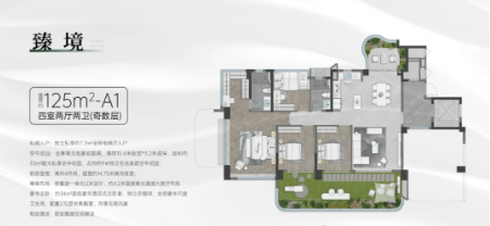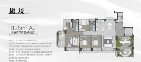 项目提供多种户型选择,最小82平方米的三房两卫户型,最大可达125平方米的四房户型。其中,82平方米户型通过巧妙设计,实现了客厅与次卧打通形成超级大方厅的效果,南向面宽达到12.4米,为空中花园预留了充足的空间。