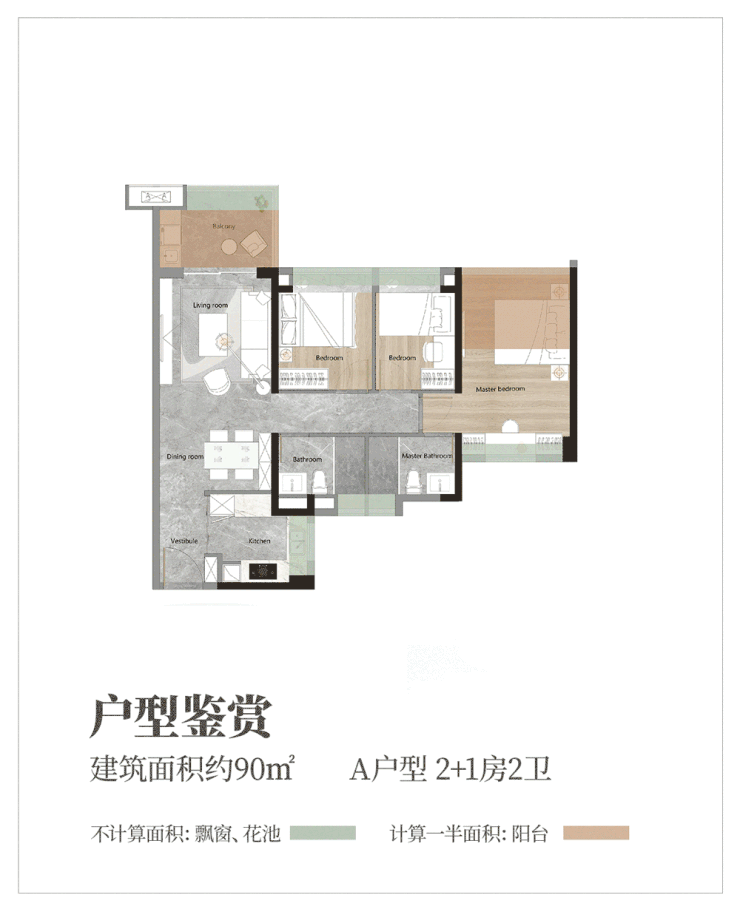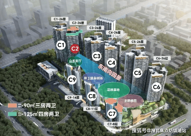 为了最大化利用背后的白云山景观资源,项目整体建筑楼栋采用了东南倾斜45度的布局方式。这种设计并非单纯的造型创新,而是基于对风向、采光以及视线通廊的综合考量,旨在让每一户居民都能获得更好的瞰山视角和通风效果。项目距离白云山直线距离仅约120米,且具备三面无遮挡的地理优势,使得高层住户在家中即可直面山景。特别是其加推的小高层产品,总层高仅为19层,共计108户,梯户比接近2梯3户,相比传统高层住宅,居住密度更低,私密性与舒适度得到进一步提升。其中,125平方米户型被定位为一线云山景观产品,在满足豪宅区景观需求的同时,面积控制在144平方米以内,符合当前市场对紧凑型高品质住宅的偏好。